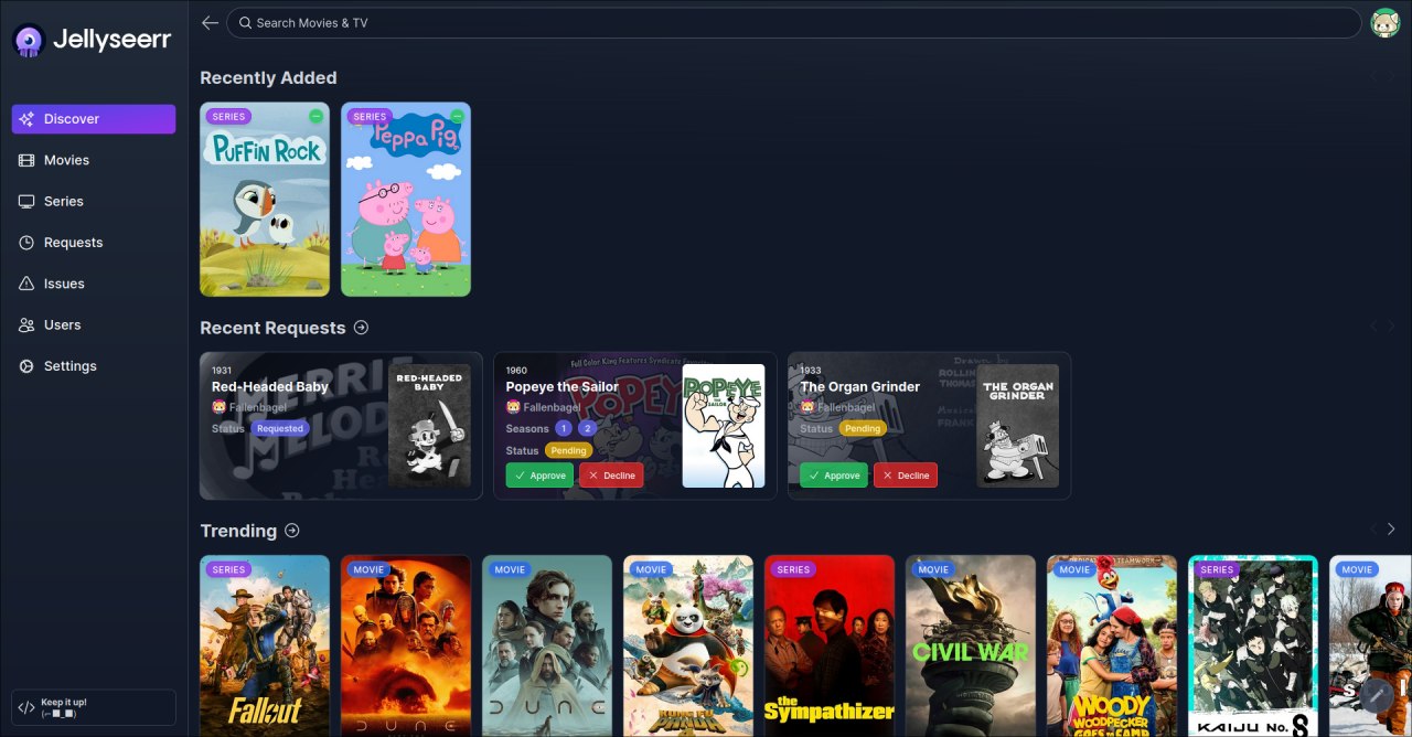 Open-source media request and discovery manager for Jellyfin, Plex, and Emby.